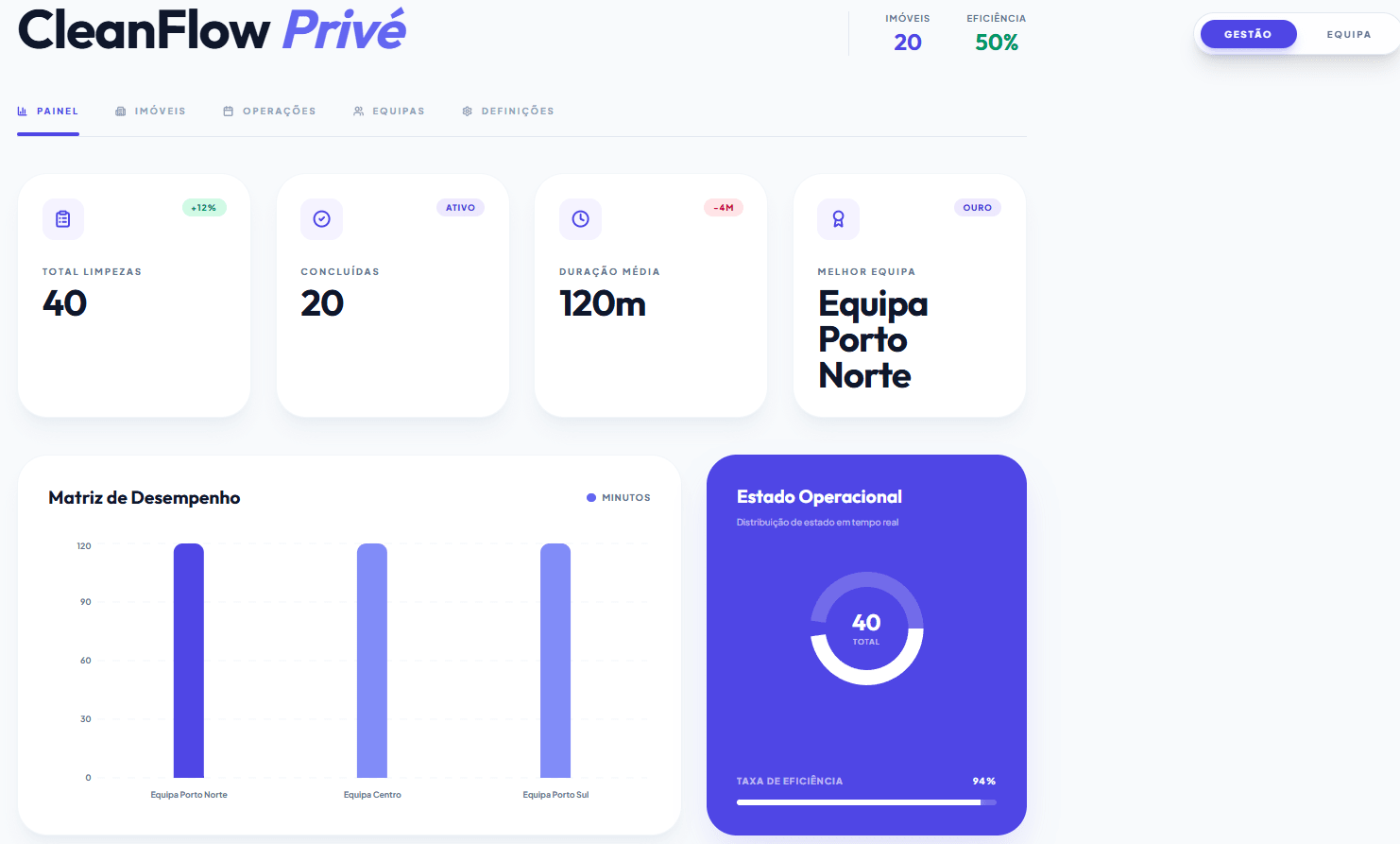 Web App personalizada para gestão de equipas de limpeza em alojamento local. Controlo de estados, agendamentos e relatórios em tempo real.